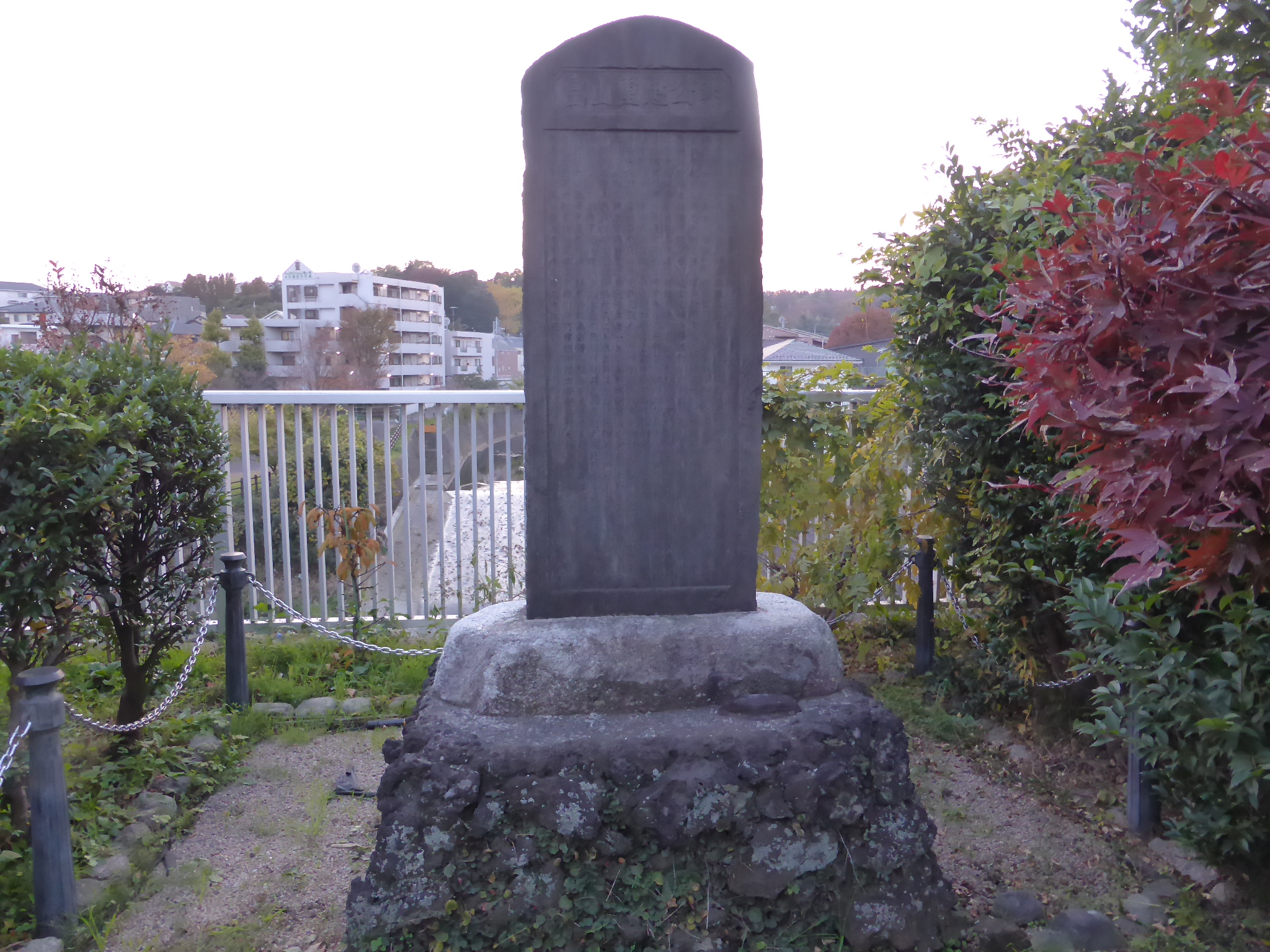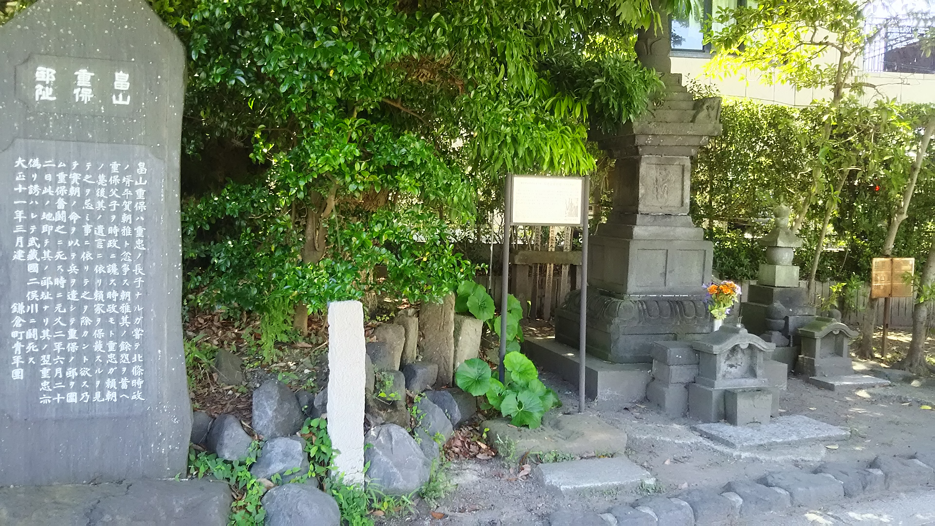 현재, 요코하마시 아사히구, 소테츠츠루가미네 역 근처에는 하타케야마 시게타다의 마지막을 기리는 석비가 세워져 있다.