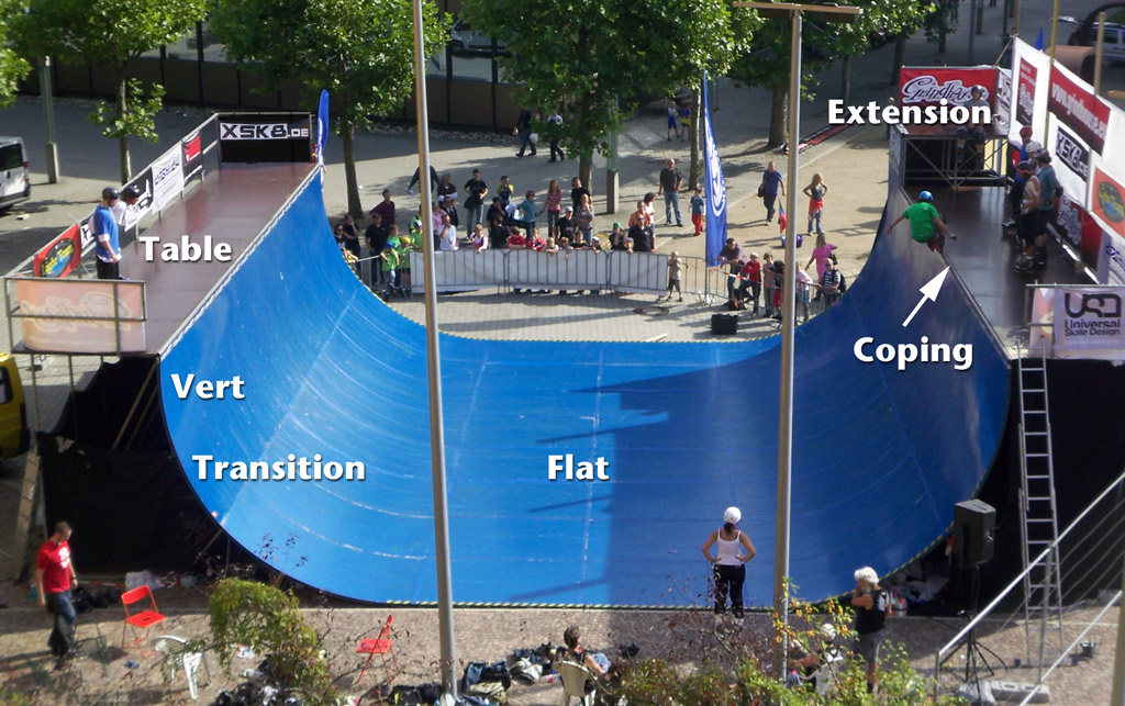 - 쿼터파이프: 하프파이프를 반으로 자른 한쪽 구간만을 의미한다.