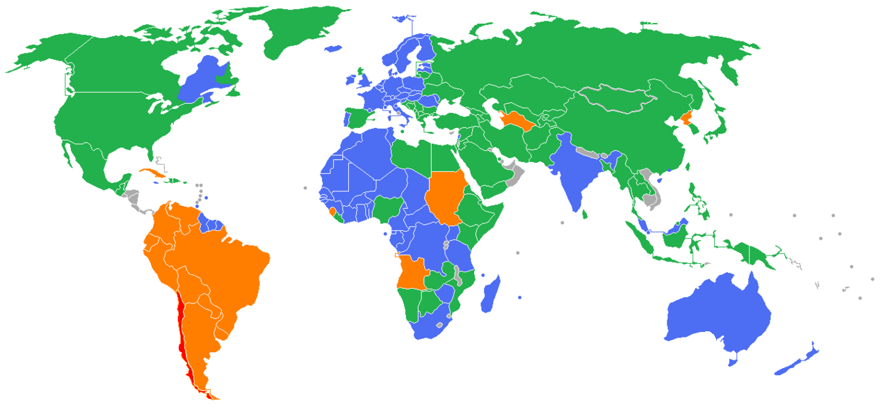 여러 국가의 학생들이 학사 학위를 받는 데 걸리는 시간을 보여주는 지도이다. 일반적으로 3년에서 6년이 걸린다.
