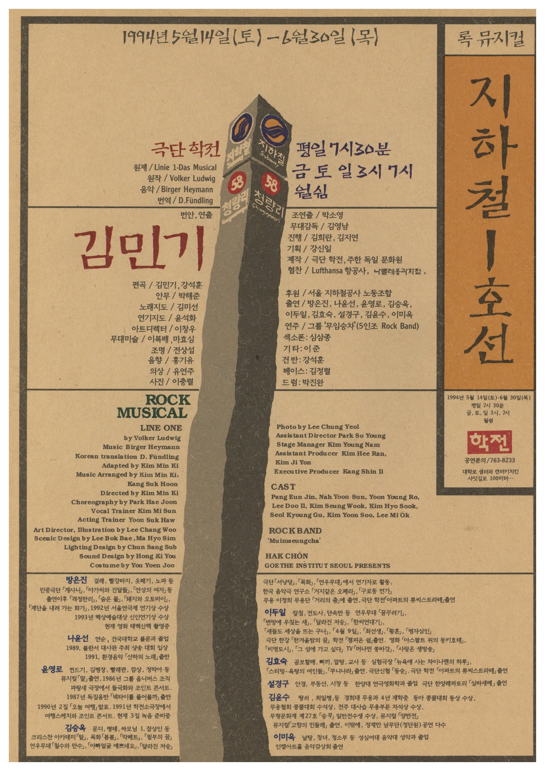 1994년 초연된 록 뮤지컬 《지하철 1호선》은 독일 'Linie Eins'를 번안한 작품이다.