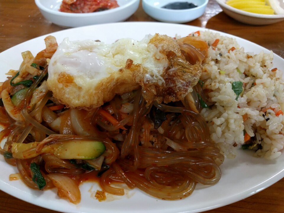 잡채밥 | 炒粉條|차오펀탸오중국어 | 잡채를 밥 위에 얹어 먹는 음식이다. | |