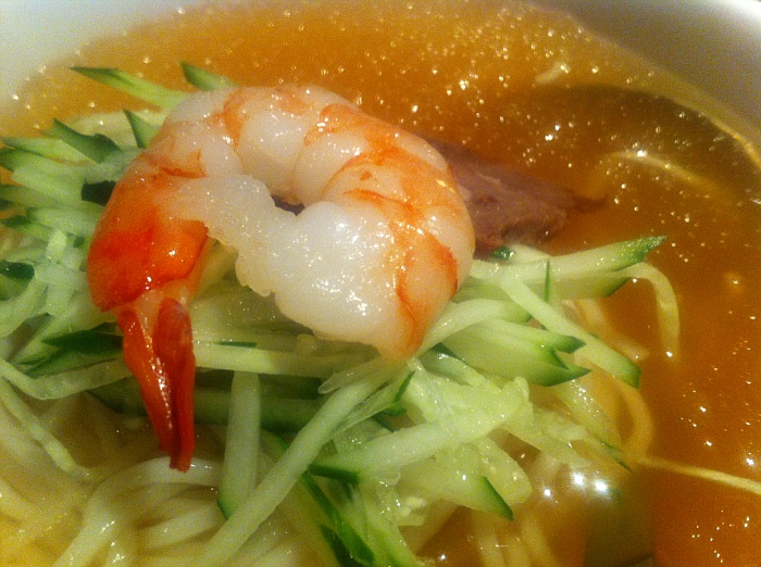 중국냉면 | 凉麵중국어 | 냉면의 일종으로 얼음 육수에 새우, 해파리, 갑오징어 등 해물과 오이, 달걀, 당근 등 채소를 곁들이고 땅콩 소스와 겨자장을 넣어 먹는 음식이다.[12] | |