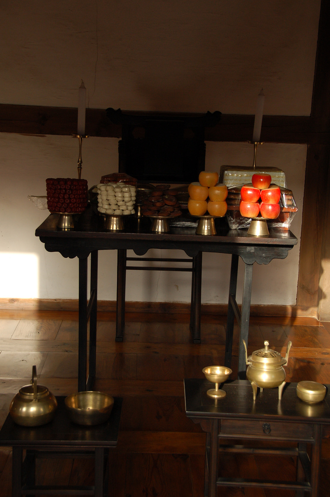 - 기제(忌祭): 고인과 배우자의 기일에 대청 북편에 제사상을 차리고 지내는 제사이다.