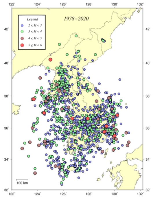 한국에서 발생하는 지진은 넓은 지역에 걸쳐 산만하게 발생하는 것처럼 보이지만, 같은 장소에서 반복적으로 발생하는 경우가 많다. 이는 지진이 지하에 새로운 단층을 형성하기보다는 기존 단층면을 따라 발생하기 때문이다. 따라서 과거 지진을 분석하고 현재 지진 현황을 파악하여 향후 발생 가능한 대규모 지진의 위치와 규모를 유추할 수 있다.[22]