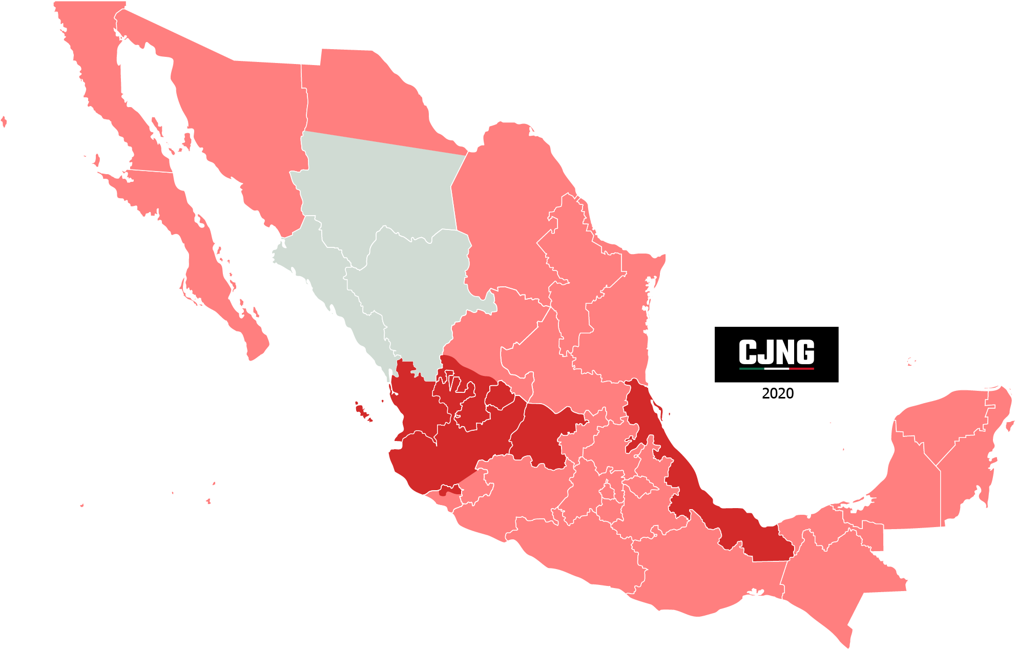 CJNG에 의한 폭력은 베라크루스 주 남부와 중부, 특히 코아차코알코스, 베라크루스, 할라파 시 사이의 태평양 연안, 그리고 푸에블라주 및 오아하카주와의 경계선을 따라 집중되어 있다.[2] 푸에블라 주 경계 지역에서는 공갈과 석유 밀매 루트 규제에, 오아하카 주와의 국경을 따라 있는 자치체는 인신매매와 마약 밀매의 전략적 거점이 되고 있다.[2]