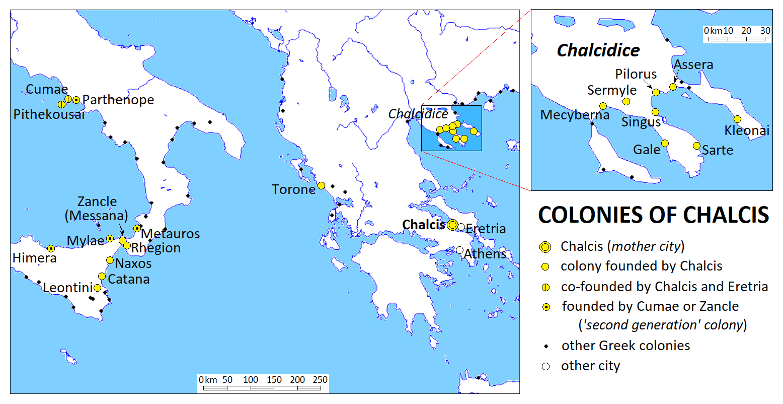 기원전 8세기와 7세기에 할키스인들은 할키디케 반도에 30개의 읍을 건설했고, 마그나 그라에키아와 시칠리아에 낙소스, 레기온, 장클레, 쿠마이와 같은 몇몇 중요한 도시를 건설했다.