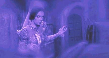 엘리자베스 메디나 역의 바바라 스틸, 영화의 채색된 악몽 같은 회상 시퀀스 중 하나