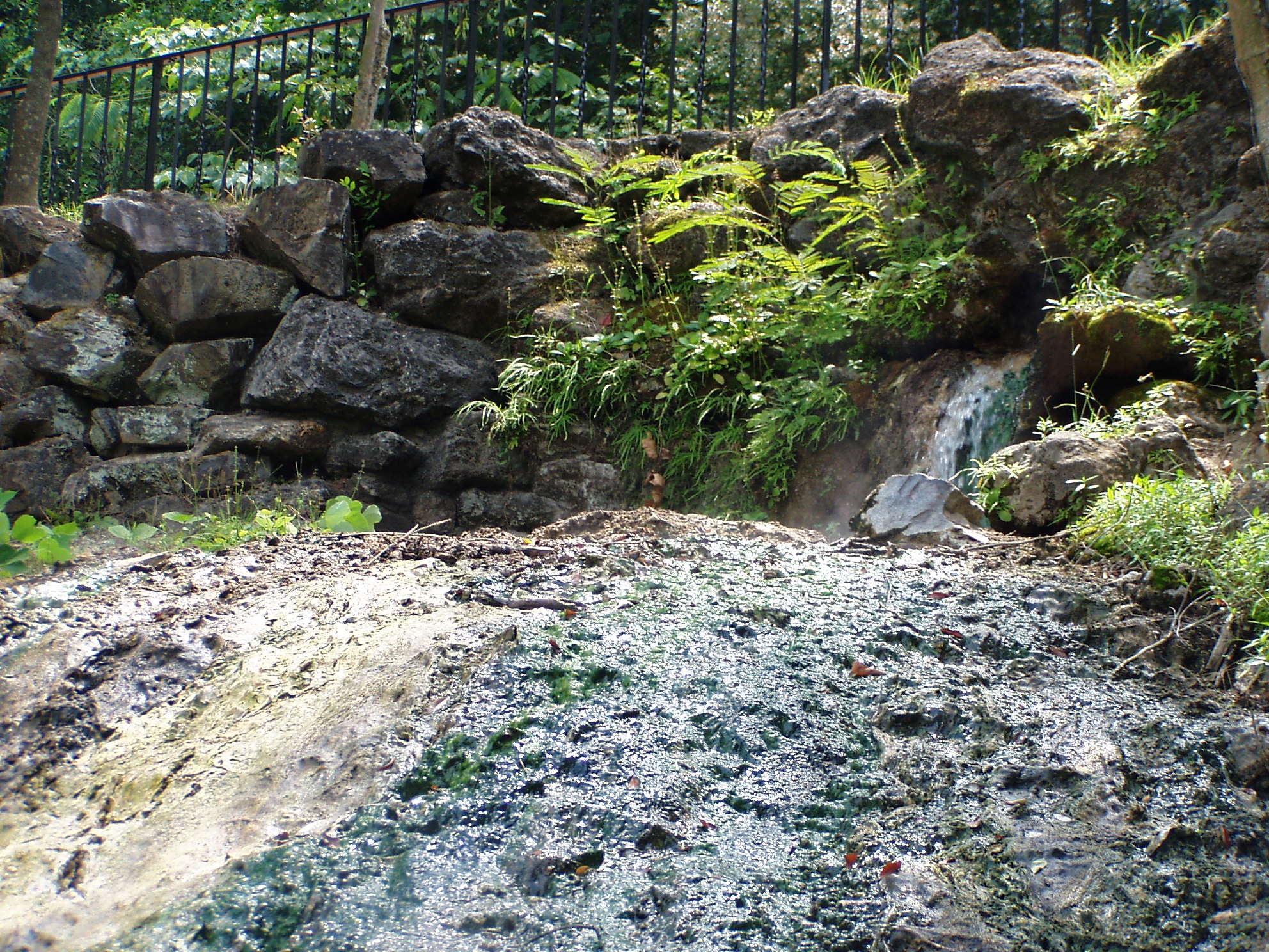 사진 설명 | 공원 입구에서 김이 나는 온천 풀 |