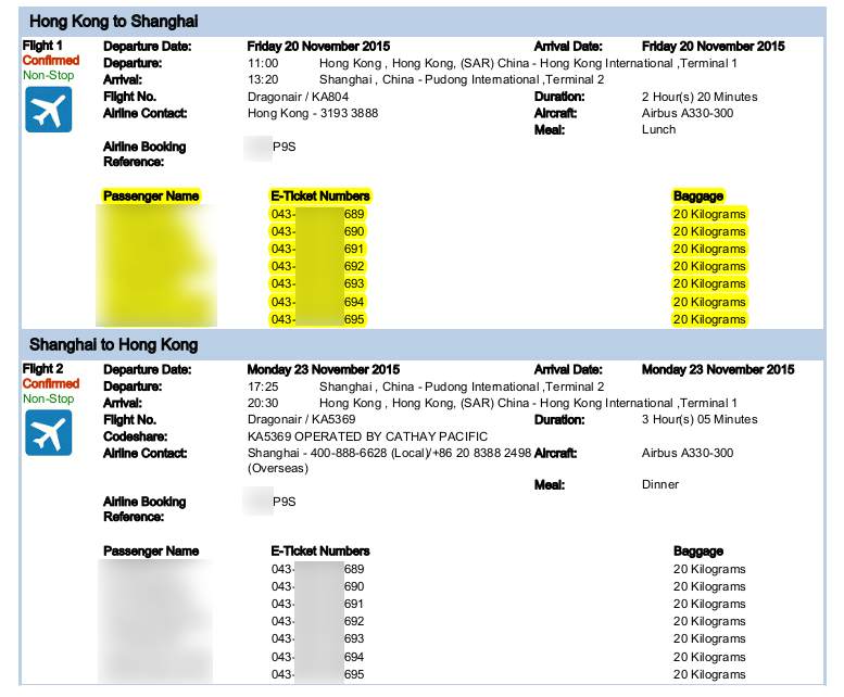항공권은 한 명의 승객만 사용할 수 있다. 여러 명의 승객이 함께 여행하는 경우, 항공권은 동일한 예약 기록 또는 예약 번호로 연결된다.