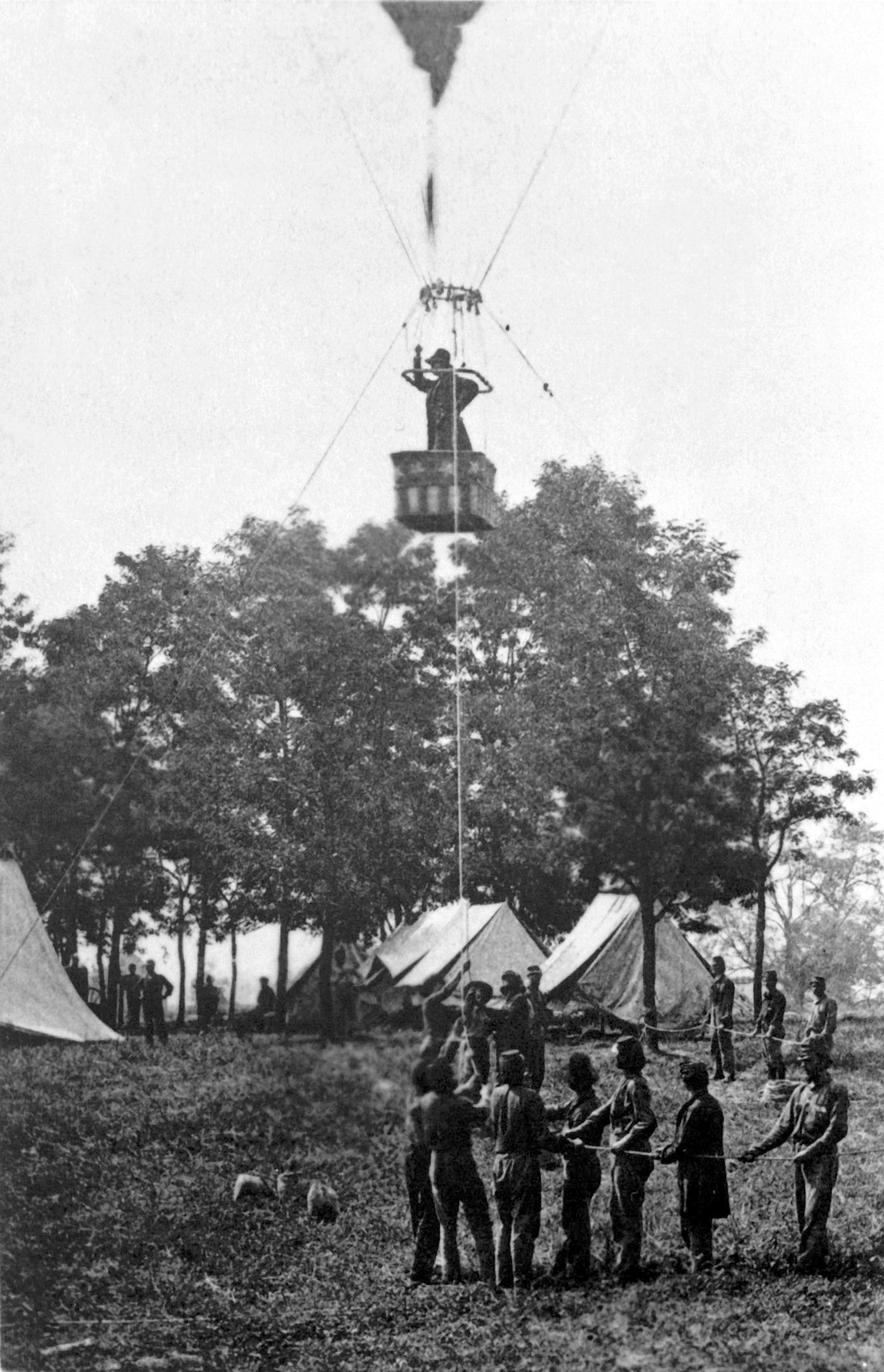 미국 남북 전쟁은 항공 기술이 유용하게 쓰인 최초의 전쟁이라고 할 수 있다.[47] 새디어스 로우는 북부 연방에서 기구 군단을 이끌며 활약했다.[42] 1861년 6월, 로우는 에이브러햄 링컨 대통령에게 자신의 기구 “엔터프라이즈”로 지상에 전보를 보내는 시범을 보였고, 이후 지형학 기술 분야의 사령관으로 임명되었다.[43] 처음에는 기구가 더 정확한 지도 제작에 도움이 될 것이라고 믿었다.