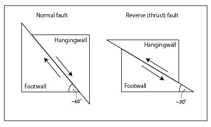 충상단층은 역단층의 일종으로, 단층면의 경사각이 일반적으로 45도 이하로 매우 낮고[37] 단층의 변위길이도 매우 길다는 특징이 있다.[38][39] 단층 위의 지층이 아래쪽으로 이동하는 정단층이나 단층 한 쪽의 지층이 다른 쪽과 비교하여 수평으로만 이동하는 주향이동단층과는 구분된다. 충상단층은 지각이 지구조적인 힘으로 압축되는 지역에서 볼 수 있다.