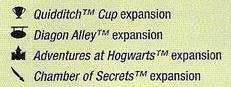 처음 세 개의 확장판은 각각 80장의 카드와 30장의 홀로그램 초상화 프리미엄 레어 카드로 구성되어 있으며, ''퀴디치 컵''(2001년 11월), ''다이애건 앨리''(2002년 3월), ''호그와트에서의 모험''(2002년 6월)이 이에 해당한다. ''퀴디치 컵'' 확장판에는 ''퀴디치'' 수업 유형과 ''경기'' 카드가,[11] ''다이애건 앨리'' 확장판에는 장소 카드가,[12] ''호그와트에서의 모험'' 확장판에는 더 많은 모험 카드가 추가되었다.
