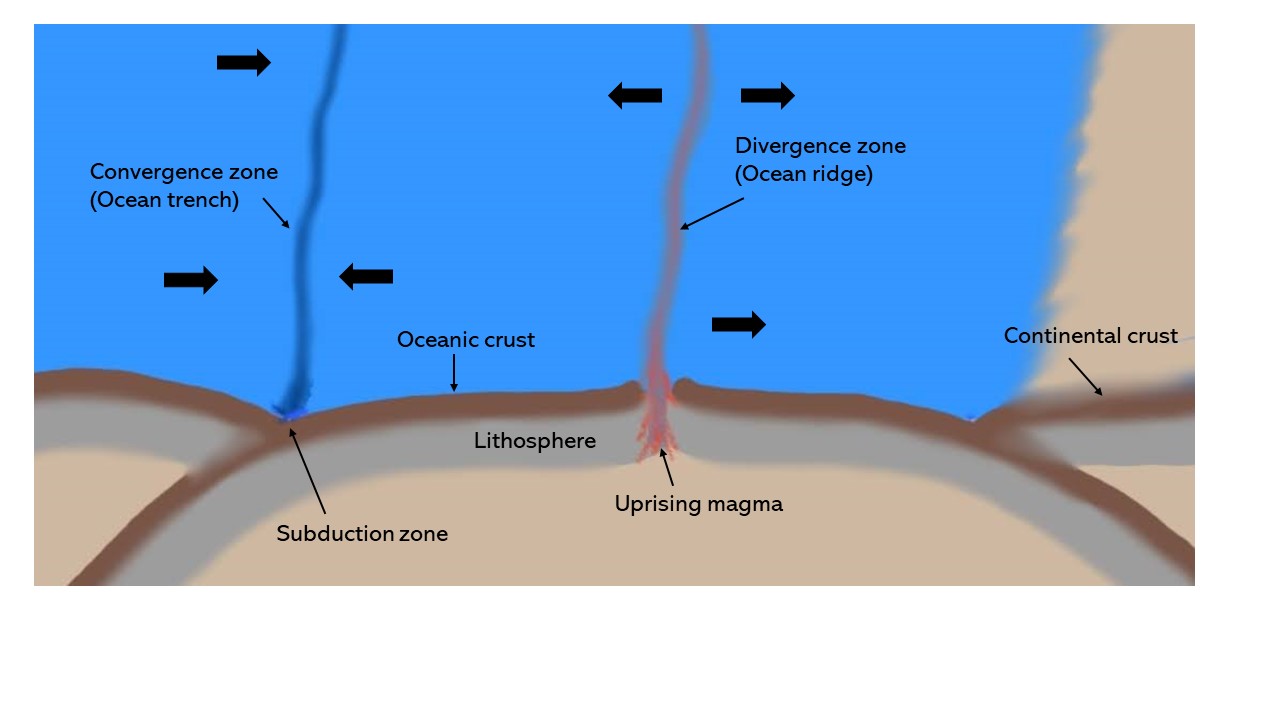 2억 년 전에는 거의 모든 육지가 판게아라고 불리는 하나의 큰 대륙을 이루고 있었고, 이후 분열되기 시작했다. 판게아가 분열되는 과정에서 태평양과 같은 일부 해양 분지는 축소되었고, 대서양북극해 분지와 같은 다른 분지는 생성되었다.