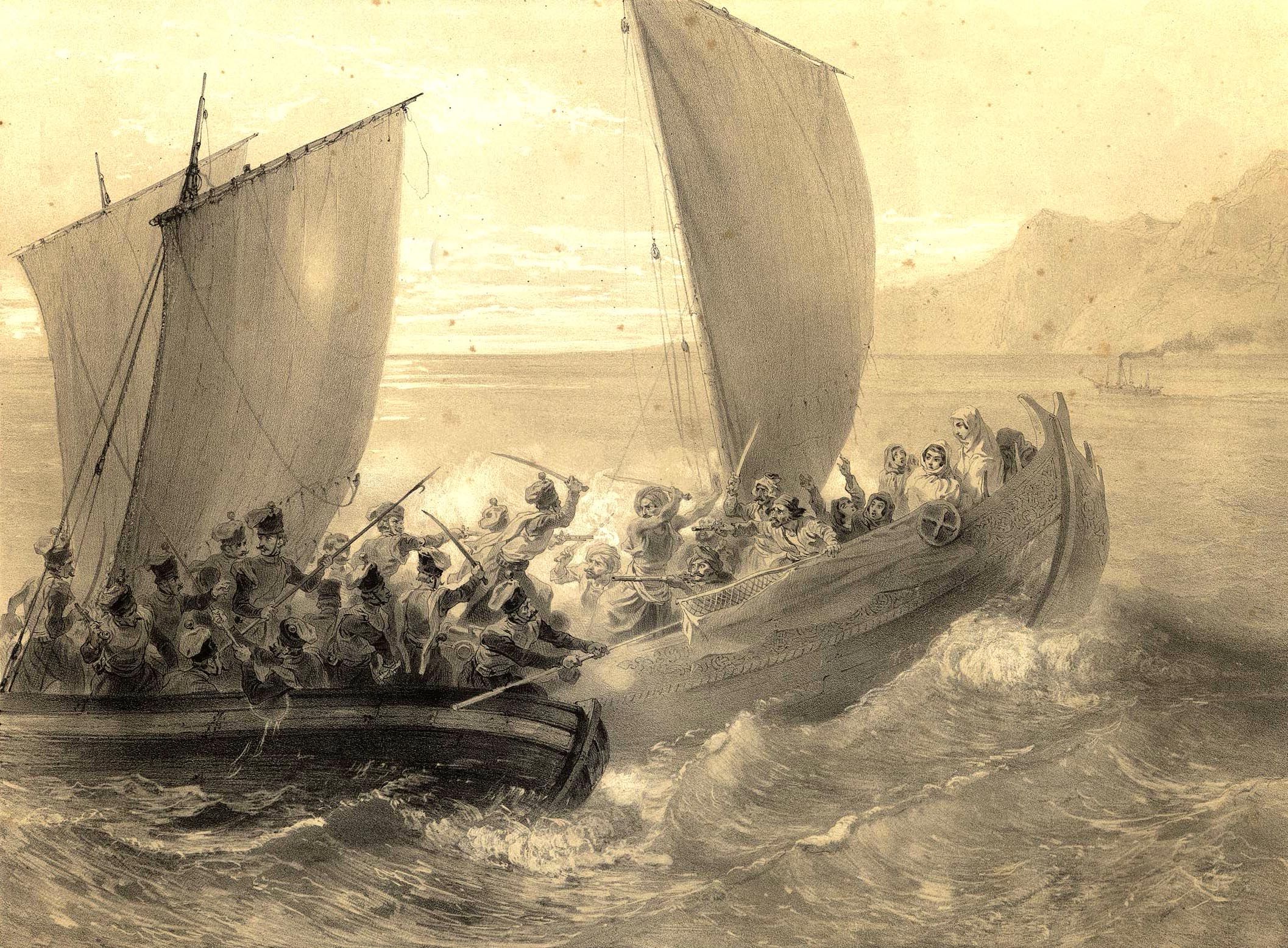 "아조프의 코사크가 터키 해적선을 공격하는 모습" (그리고리 가가린)