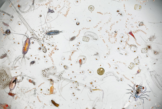 미생물은 해양 생물량의 약 70%를 차지한다.[4] 이들은 단세포 생물이거나 다세포 생물일 수 있으며, 모든 세균과 고세균, 조류, 원생동물, 균류와 유사한 원생생물을 포함한 대부분의 원생생물, 그리고 선충과 같은 특정 미세 동물도 포함한다. 많은 거시적 동물과 식물은 현미경적 유생 단계를 거친다.
