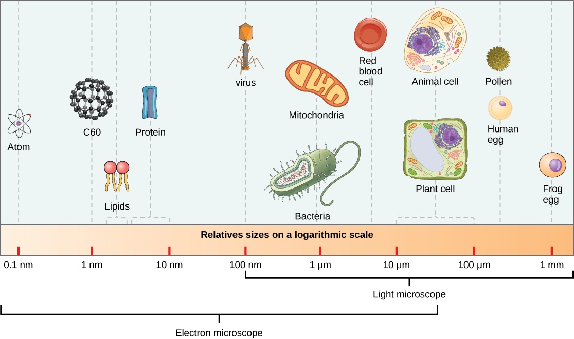 원핵생물의 세포와 달리 진핵생물의 세포는 고도로 조직화되어 있다. 식물, 동물, 균류는 일반적으로 다세포생물이며 전형적으로 거시적이다. 대부분의 원생생물은 단세포이며 현미경적이다. 그러나 예외도 있다. 일부 단세포 해양 원생생물은 거시적이다. 일부 해양 점균류는 단세포, 군집, 다세포 형태 사이를 전환하는 독특한 생활환을 가지고 있다.[95] 다른 해양 원생생물은 해조류와 같이 단세포도 아니고 현미경적이지도 않다.