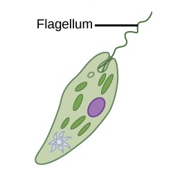 운동성 | 편모충류 | ![]() | 편모(라틴어로 채찍)는 일부 원생생물(일부 박테리아도)의 세포 몸체에서 돌출된 채찍 모양의 부속지이다. 편모충류는 운동을 위해 하나에서 여러 개의 편모를 사용하며, 때로는 먹이 섭취 및 감각 세포소기관으로 사용한다. | ![]() | 모든 와편모조류와 나노편모조류(털편모조류, 규질편모조류, 대부분의 녹조류)[102][106] |