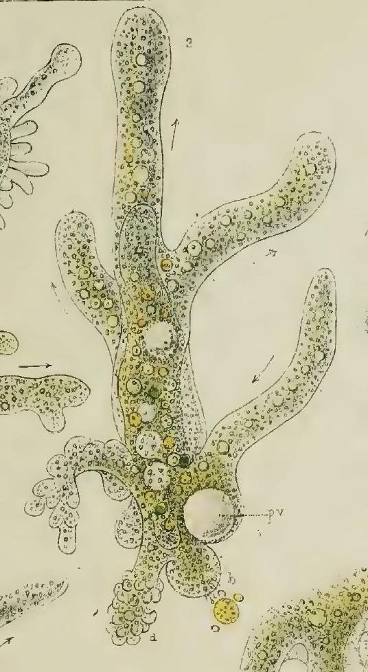 아메바 (아메바류) | ![]() | 아메바는 위족(그리스어로 가짜 발)을 뻗고 수축하여 모양을 변경하는 능력이 있다.[103] | ![]() | 모든 주요 원생생물 계통에서 발견된다. 아메바류 세포는 원생동물뿐만 아니라 조류와 균류에서도 발생한다.[104][105] | |