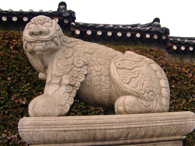 중국과의 차이점은 양이나 소의 모습이 아닌 사자 형상이며, 대개 머리에 뿔이 없다는 것이다. 하지만 문헌상의 지식으로는 조선에서도 일각수(一角獸)로 인식되었으며, 왜 조형된 실제 조각상에서는 뿔이 없어지는 경우가 많은지는 불분명하다.