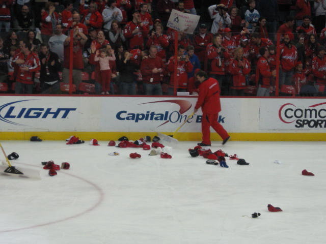 1995년 10월, 플로리다 팬서스(Florida Panthers)의 주장 스콧 멜런비(Scott Mellanby)는 팀 동료 존 반비즈브룩(John Vanbiesbrouck)이 만든 용어인 랫 트릭(rat trick)을 기록했다.[50] 경기 전, 멜런비는 팬서스의 라커룸에서 하키 스틱(hockey stick)으로 쥐(rat)를 죽였고, 그날 밤 두 골을 넣었다.[50] 이후 경기에서 멜런비가 해트트릭을 기록하자 일부 플로리다 팬들은 얼음판 위로 플라스틱 쥐를 던졌고, 이는 1996 플레이오프 동안 모든 팬서스의 골에 이어지는 전통이 되었다. 플라스틱 쥐를 치우는 데 필요한 시간으로 인해 경기가 지연되자 리그에서는 결국 이 행위를 금지하고 규칙 63을 수정하여 위반에 대해 홈팀에 마이너 페널티를 부과했다.[51] 진짜 해트트릭 후에 팬들이 모자를 얼음판에 던지는 보다 전통적인 관행은 이 페널티의 적용을 받지 않는다.[51]