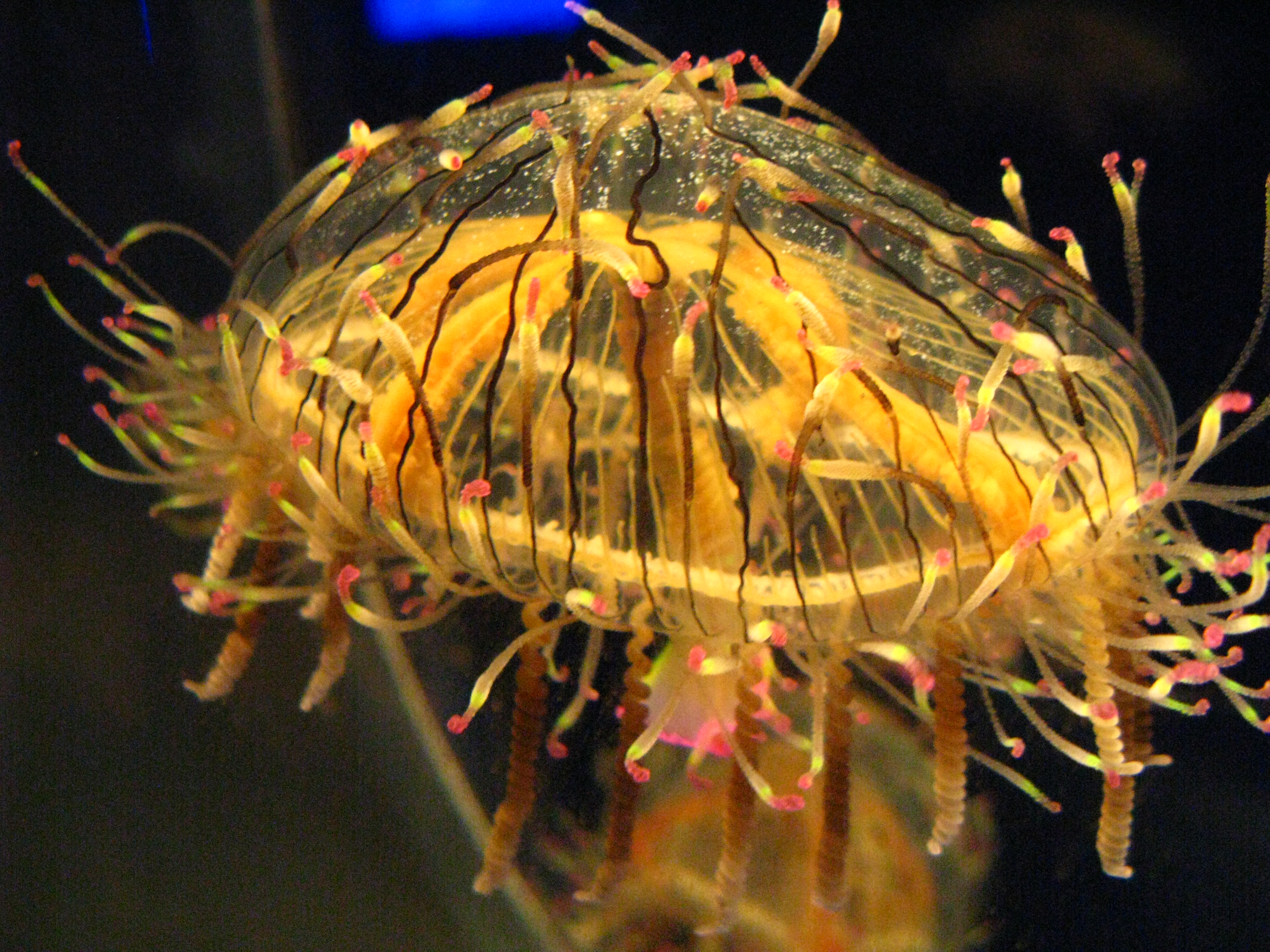 해파리는 자포동물에 속하는 해양 생물로, 몸은 젤라틴질이며 우산 모양을 하고 있다. 명칭은 1796년부터 사용되었으며, 히드로충강, 십자해파리강, 상자해파리강, 관해파리강에 걸쳐 존재한다. 해파리류는 메두소조아의 생활사 단계이며, 자유롭게 헤엄치는 해양 강장동물로 정의된다. 해파리는 유성 생식과 무성 생식을 반복하는 생애 주기를 가지며, 특정 환경 조건에서 대량 번식하여 어업 피해, 발전소 가동 중단, 관광객 쏘임 사고 등을 유발하기도 한다. 반면, 식용으로 이용되거나, 녹색 형광 단백질(GFP) 연구에 활용되기도 하며, 수족관 전시를 통해 관상 생물로도 인기를 얻고 있다.