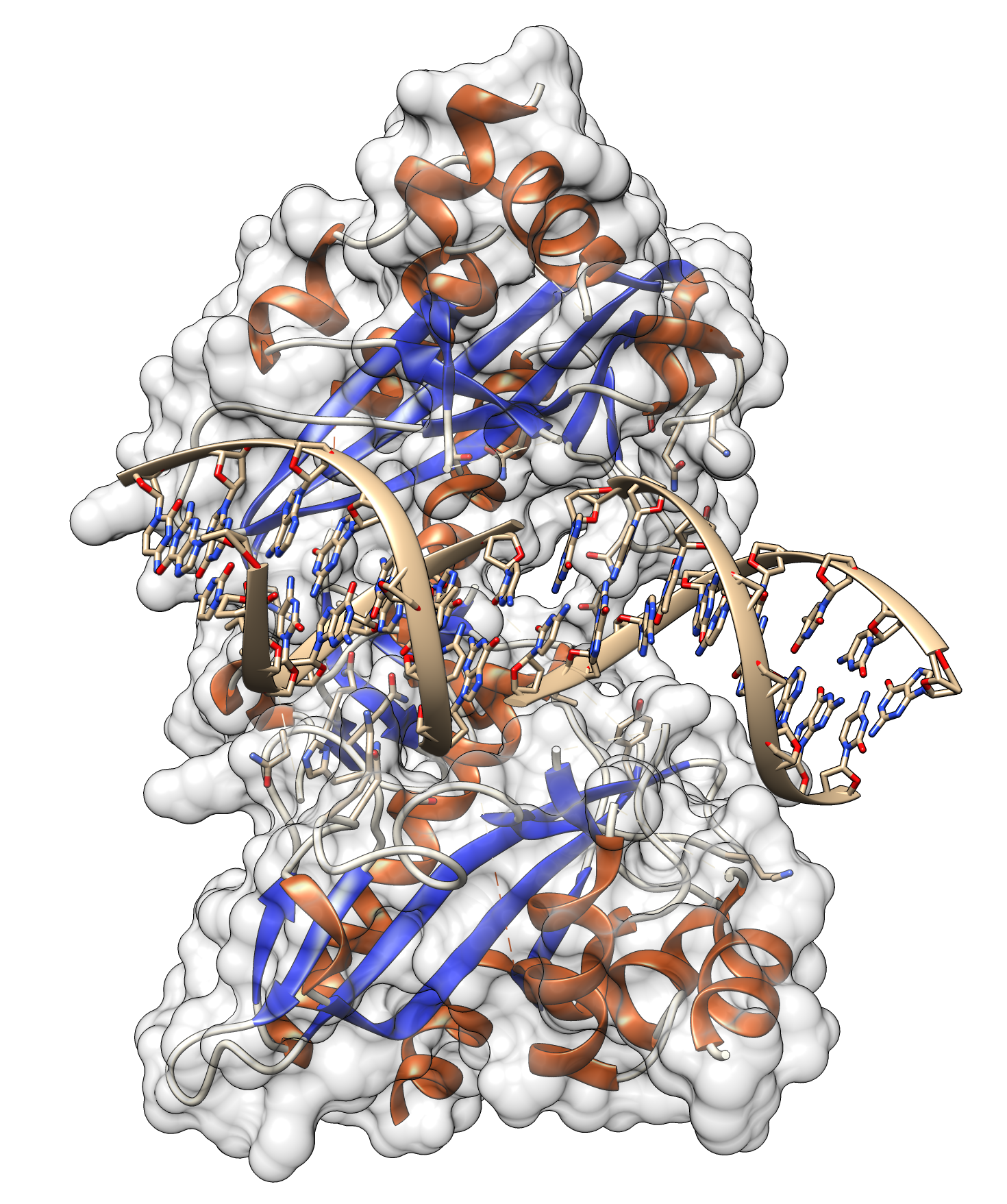 장소 특이적 핵산 분해 효소는 DNA 결합 도메인의 깊은 홈으로 DNA를 끌어들인다. 이는 DNA 3차 구조에 상당한 변형을 초래하고 염기성(양으로 하전된) 잔기가 풍부한 표면으로 도달된다. DNA와의 광범위한 정전기 상호 작용에 관여한다.[27]
