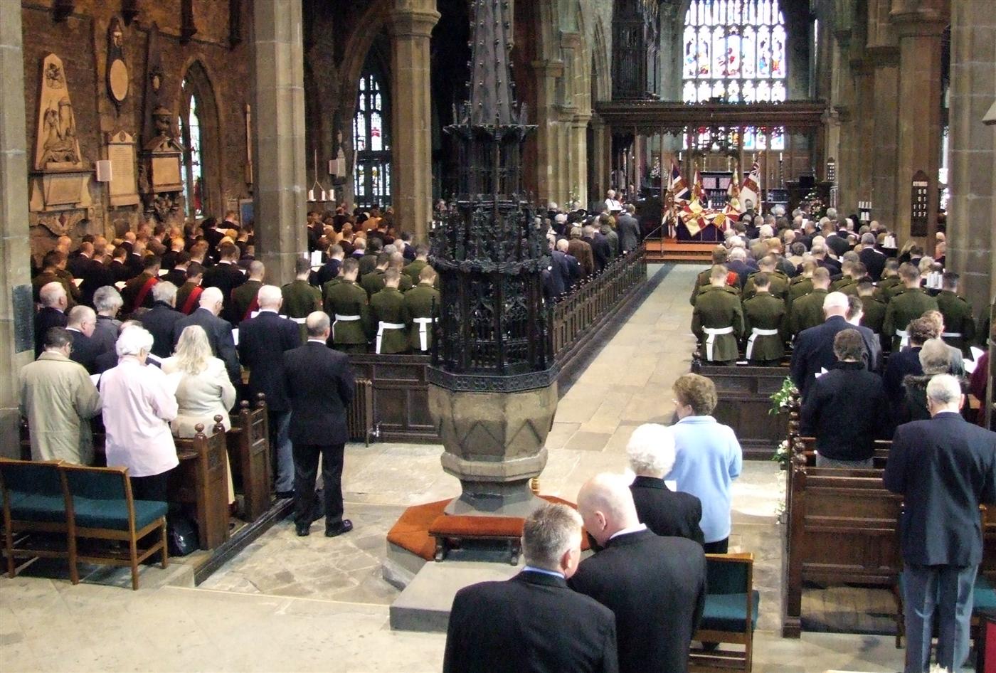제1대 웰링턴 공작 연대의 이전 연대 기치는 핼리팩스 민스터에 보관되어 있습니다. 여기에는 1761년에서 1771년 사이에 제33연대가 사용했던 깃발이 포함되어 있는데, 이는 잉글랜드에서 현존하는 가장 오래된 깃발 중 하나이며, 워털루 전투와 크림 전쟁 당시 연대가 사용했던 깃발도 포함되어 있습니다.[24] 1981년 기치단은 2002년에 사용이 중단되었습니다.