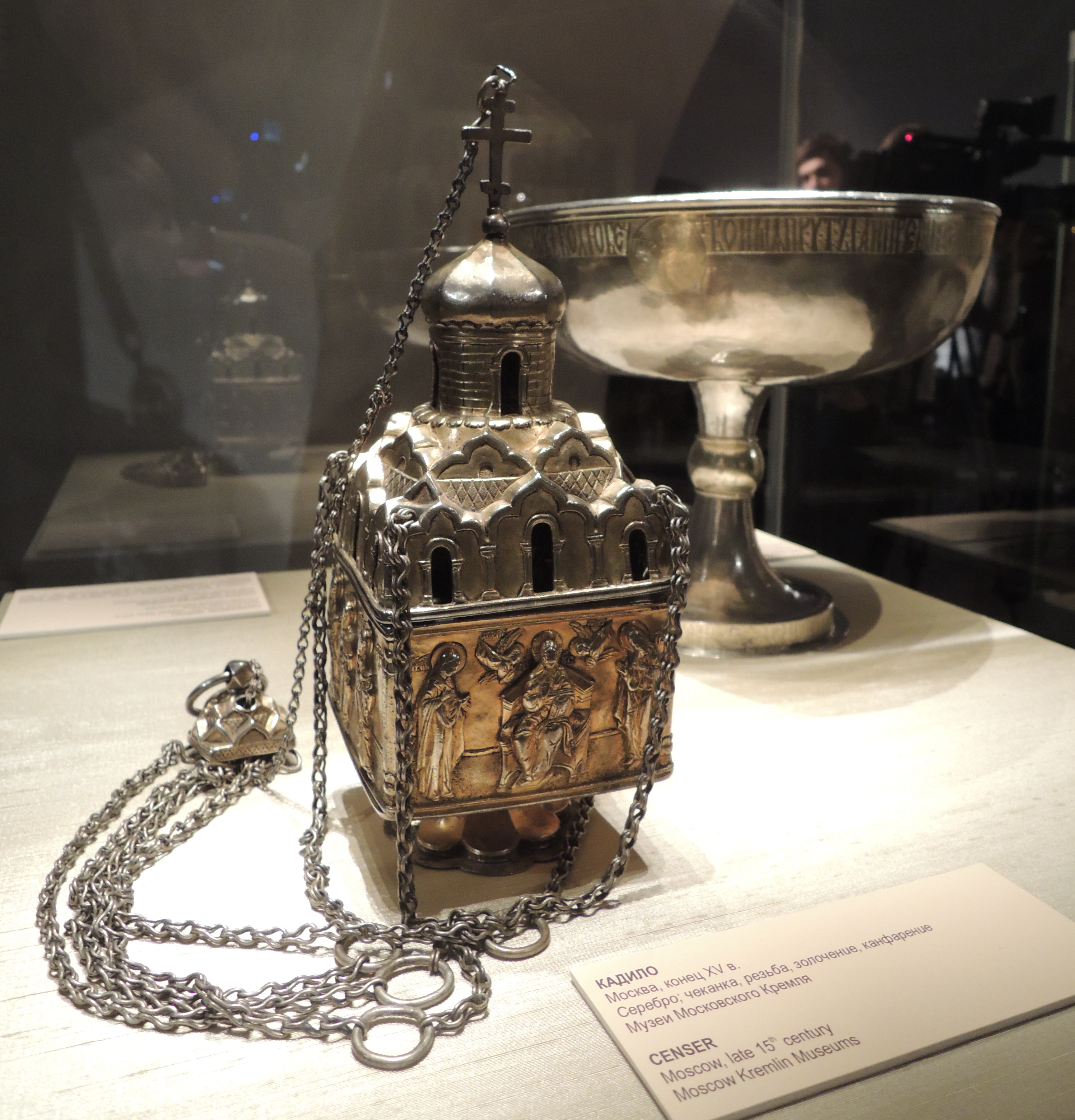 동방정교회, 동방교회, 동방 가톨릭 교회에서 사용하는 향로는 서방교회의 향로와 디자인이 유사하다. 네 번째 사슬은 자물쇠 구멍을 통과하여 미끄러지듯 뚜껑을 열 수 있게 되어 있다. 사슬에는 열두 사도의 설교를 상징하는 12개의 작은 종이 달려 있기도 한데, 그중 하나는 유다를 상징하여 울리지 않도록 한다.[27] 어떤 전통에서는 주교만이 종이 달린 향로를 사용하기도 한다. 부제가 향을 피우기 전, 사제(또는 주교)에게 향로를 가져가 축복을 받는다. 향로, 숯, 향은 성구실 입구에 보관하며, 대만과(대사경) 때 향로를 사용한다.