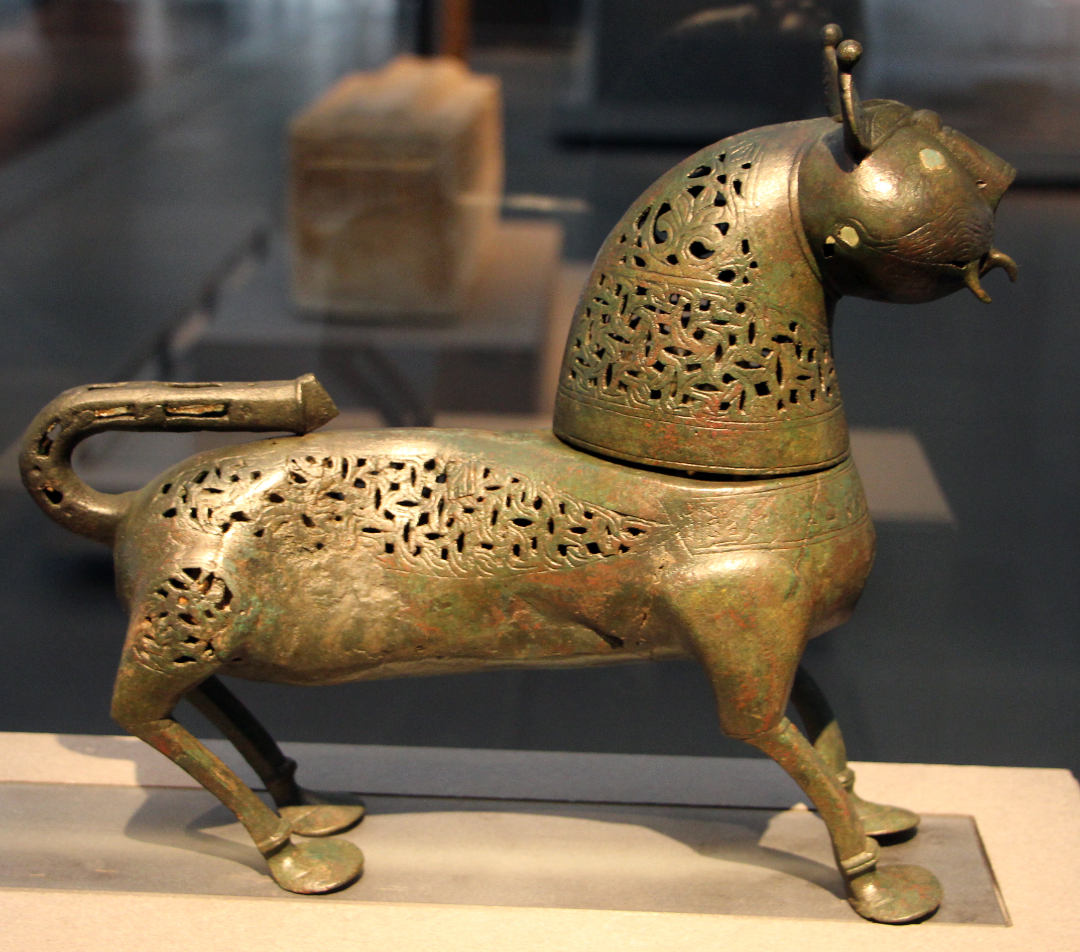 향로(아랍어로 '''미크타라''')는 종교적, 세속적 맥락 모두에서 사용되었지만, 궁궐과 가옥에서 더 널리 사용되었다. 접시 모양에 동물 형상 디자인을 가진 향로 중 가장 오래된 예는 간자(Ghanza)에서 발굴되었고,[14][15] 가장 오래된 동물 형상 향로는 11세기 타지키스탄 출토 유물이다.[16] 이러한 관습은 아마도 헬레니즘 양식 향로[15]와 기원전 8세기부터 아라비아 반도에 존재했던 유향 무역에서 영향을 받았을 것이다.[17]