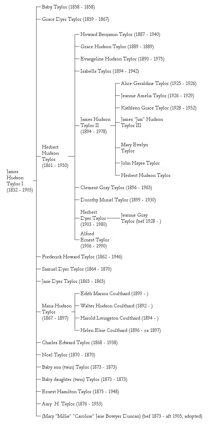 허드슨 테일러는 1832년 5월 21일 잉글랜드 요크셔주 반즐리에서 약사이자 감리교 평신도 설교자였던 아버지 제임스 테일러와 어머니 아멜리아 허드슨 사이에서 태어났다. 어린 시절 그는 부모의 기독교 신앙에 의문을 가졌다. 그러나 16세 때[3] "가난한 리처드"라는 제목의 복음 전파 팸플릿을 읽은 후[4][5] 그리스도를 믿는다고 고백했다. 1849년 12월 그는 선교사로 중국에 갈 것을 결심했다.[6] 이 무렵 그는 켄싱턴의 에드워드 크로닌(동종 요법 의사)과 접촉했는데, 그는 바그다드로 파견된 최초의 플리머스 형제단 선교단의 일원이었다. 테일러는 월터 헨리 메드허스트의 저서 ''중국: 그 국가와 전망''을 빌려 읽었다.[7] 이 무렵 그는 표준중국어, 코이네 그리스어, 히브리어, 라틴어를 공부하기 시작했다.