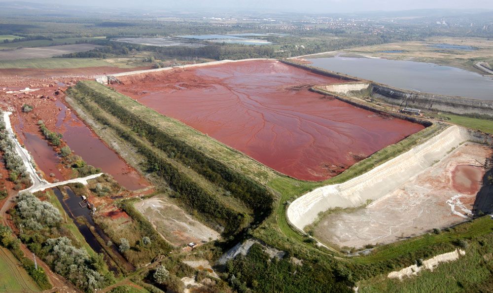 2010년 10월 4일 중앙유럽 하계 시간(CEST) 12시 25분 (협정 세계시(UTC) 10시 25분)[28] 경, 헝가리 수도 부다페스트에서 서쪽으로 약 150km 떨어진 베스프렘 주 아이카에 위치한 헝가리 알루미늄 제조 판매 주식회사(MAL Magyar Alumínium Termelő és Kereskedelmi Zrt.hu) 공장의 광재 댐 둑이 붕괴되었다. 이 댐에는 알루미늄 정제 과정에서 발생하는 산화 철(III)을 주성분으로 하는 적니 폐액을 저장하고 있었다. 중금속과 강염기성 물질을 포함하여 독성과 부식성이 높은 이 폐액 약 100만 입방미터 (35e6)가 유출되어, 높이 1m에서 2m에 달하는 파도를 이루며 인근 콜론타르 마을과 데베체르 마을로 흘러 들어갔다[29].