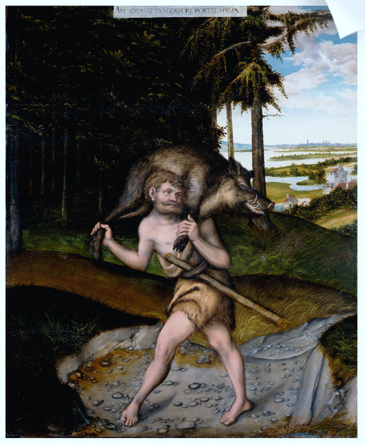 헤라클레스에게 잡혀온 멧돼지를 본 에우리스테우스는 겁에 질려 청동 항아리 속에 숨었다고 한다.