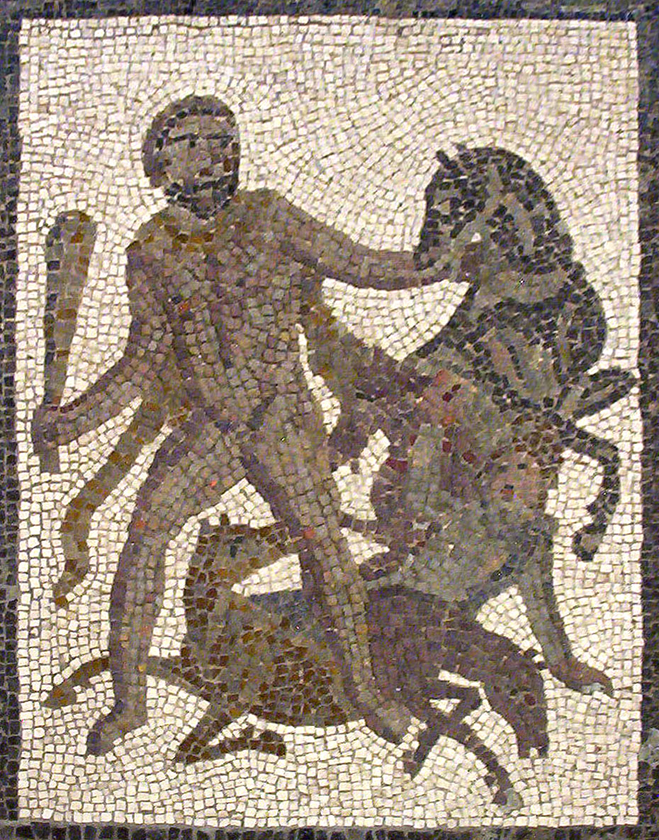 크레타의 들판에서 황소와 씨름한 끝에 헤라클레스는 황소를 사로잡았다. 신화에 따르면 헤라클레스가 황소를 때려잡은 것을 기념하기 위해 미노스 왕은 이라클리온이라는 도시를 세웠다고 한다. 에우리스테우스는 이 황소를 헤라에게 바쳤으나 헤라가 이를 받지 않아 방치되었는데, 나중에 마라톤으로 건너가 소란을 피우던 중 아테네의 영웅 테세우스에 의해 처치되었다.[16]