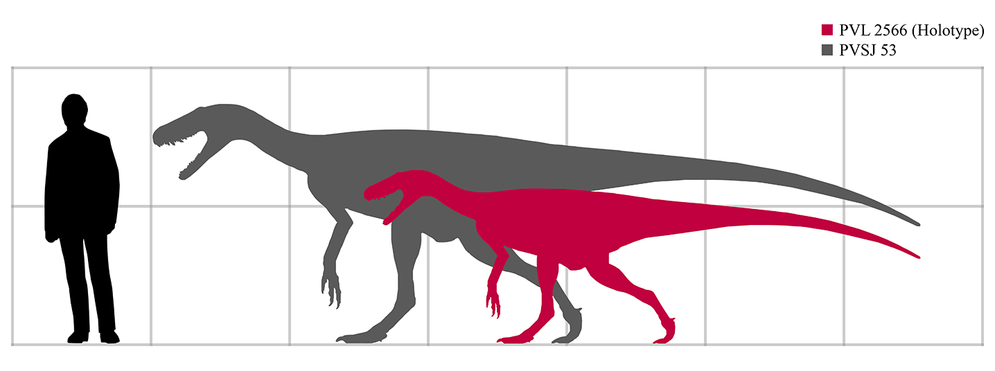 ''헤레라사우루스''(Herrerasaurusla)는 트라이아스기 후기에 살았던 초기 공룡의 한 속으로, 가볍게 지어진 이족 보행 육식동물이었다. 긴 꼬리와 비교적 작은 머리를 가졌으며, 다 자란 개체는 몸길이 최대 6m,[3] 몸무게 약 350kg에 달했다.[33] 더 작은 표본은 몸길이 약 4.5m, 몸무게 약 200kg이었다.[34]