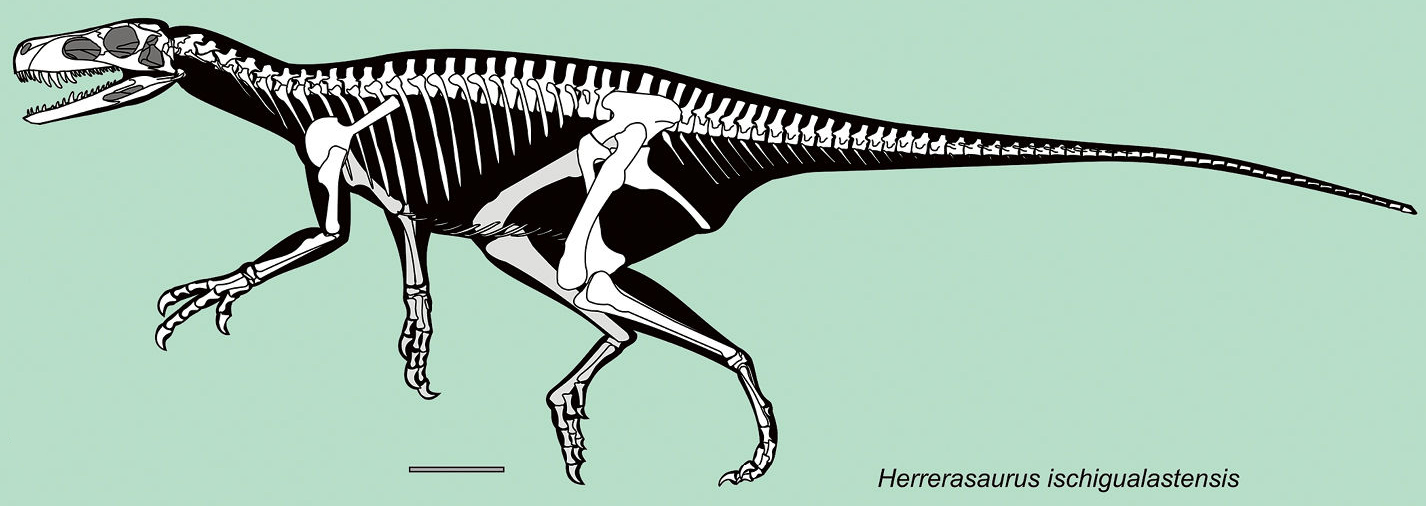 ''헤레라사우루스''는 이족 보행을 하는 육식동물이었다.[85] 최대 몸길이는 6m, 몸무게는 350kg에 달했다.[79] 헤레라사우루스과를 대표하는 속이며, 스타우리코사우루스나 산유안사우루스, Gnathovorax|그나토보락스eng보다 큰 체구를 가졌다.
