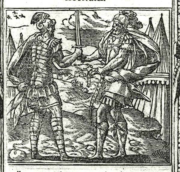 전쟁 10년째, 파리스가 메넬라오스와의 전투를 피하는 것을 보고 헥토르는 그에게 온 나라에 문제를 일으키고 싸우는 것을 거부했다고 꾸짖었다. 그래서 파리스는 단독 결투를 제안하여 자신과 메넬라오스가 싸우고 승자에게 헬레네를 주어 전쟁을 끝내자고 했다.[10] 하지만 그 결투는 아프로디테의 개입으로 인해 무승부로 끝났고, 아프로디테는 파리스를 전장에서 데리고 나갔다. 판다로스가 메넬라오스를 화살로 부상시킨 후, 전투가 다시 시작되었다.