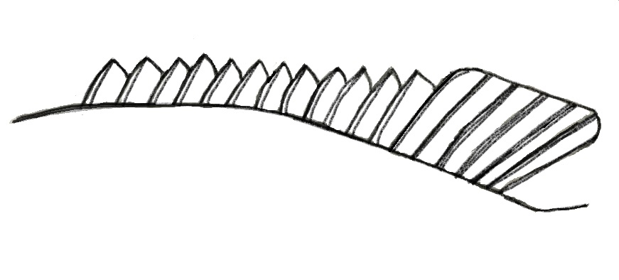 호박돔의 등지느러미. 12개의 가시와 7개의 연조.