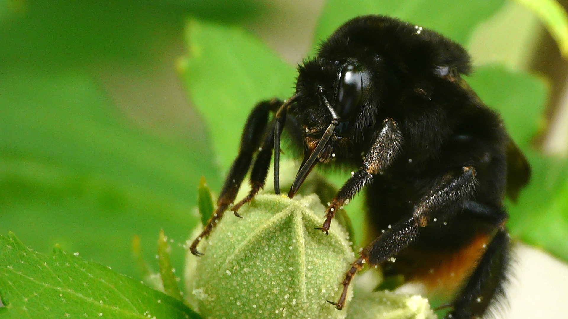 호박벌(''Bombus ignitus'')은 중간 길이의 혀를 가진 큰 벌이다.