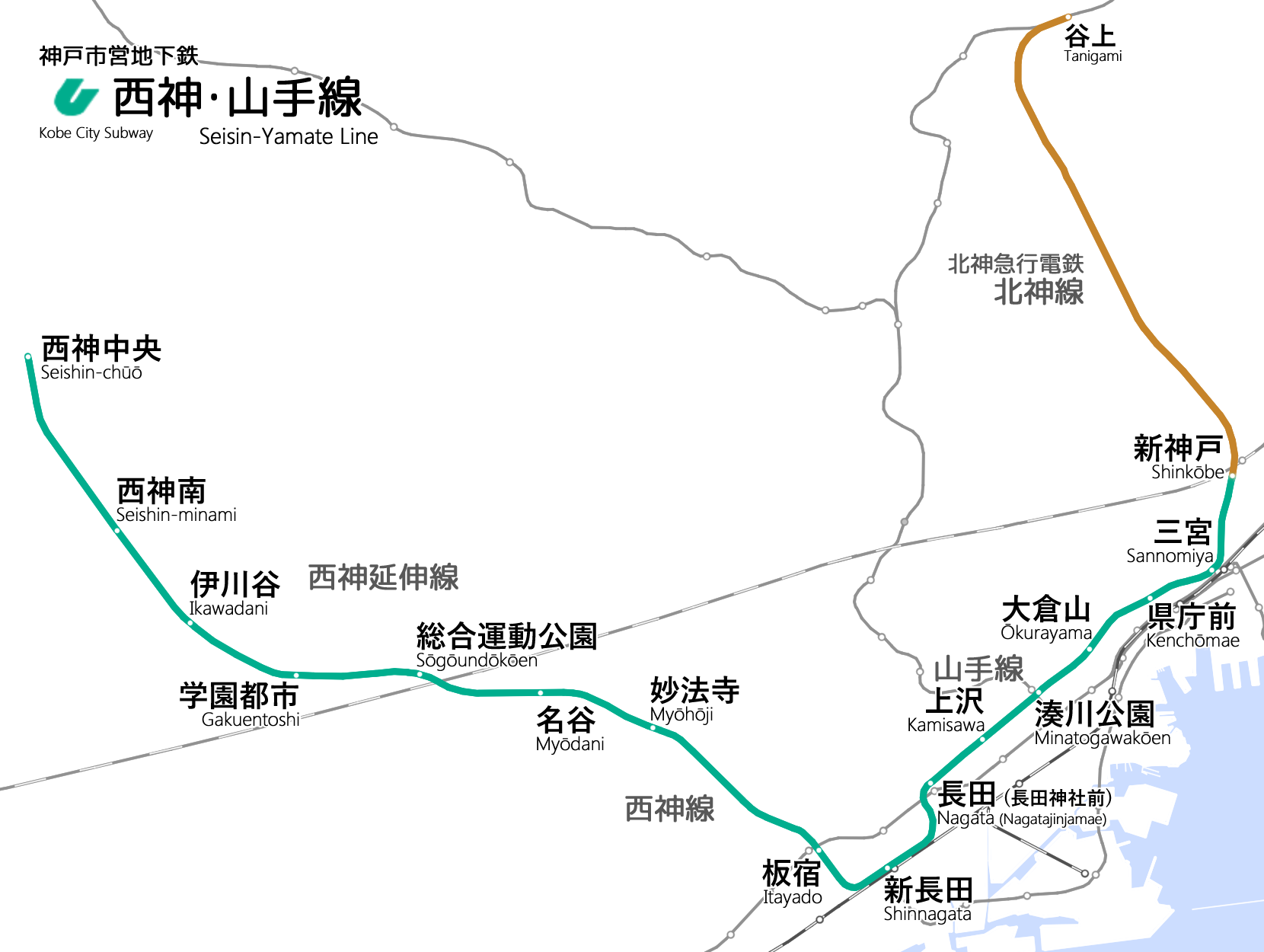 고베 시영 지하철 호쿠신선은 고베시 교통국이 운영하는 7.5km의 철도 노선으로, 다니가미역과 신코베역을 연결하며, 롯코산지를 관통하는 호쿠신 터널이 노선의 대부분을 차지하고, 세이신·야마테선과 직결 운행을 통해 고베 도심과 연결된다. - 고베시의 기업 - 고베 신교통