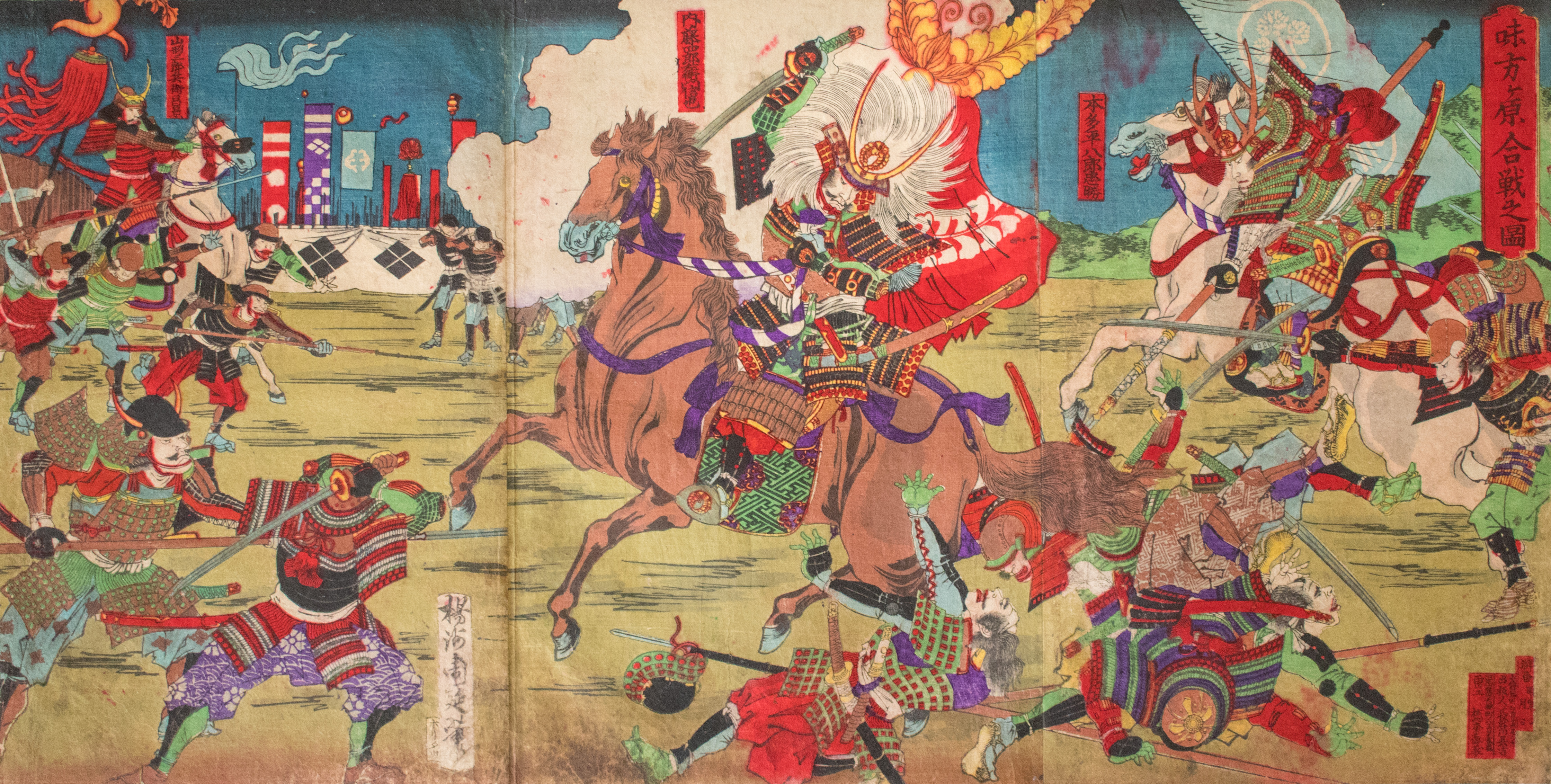 미카타가하라 전투의 전초전인 히토코토자카 전투에서 혼다 다다카쓰의 용맹함을 본 다케다측의 무장인 고스기 사콘(小杉左近)은 「家康に過ぎたるものは二つあり、唐のかしらに本多平八(이에야스에게 과분한 것이 두가지가 있으니, 당나라 투구와 혼다 헤이하치이니라)」라는 교카(狂歌)의 낙서를 통해 그의 용맹스러움을 칭찬하였다[158]. 혼다 다다카쓰는 전국시대의 다이묘 중 한 명인, 다케다 신겐(武田信玄)을 상대로 미카타가하라 전투에서 눈부신 활약을 했으며 궁지에 몰린 자신의 주군 도쿠가와 이에야스를 구하기도 했다.