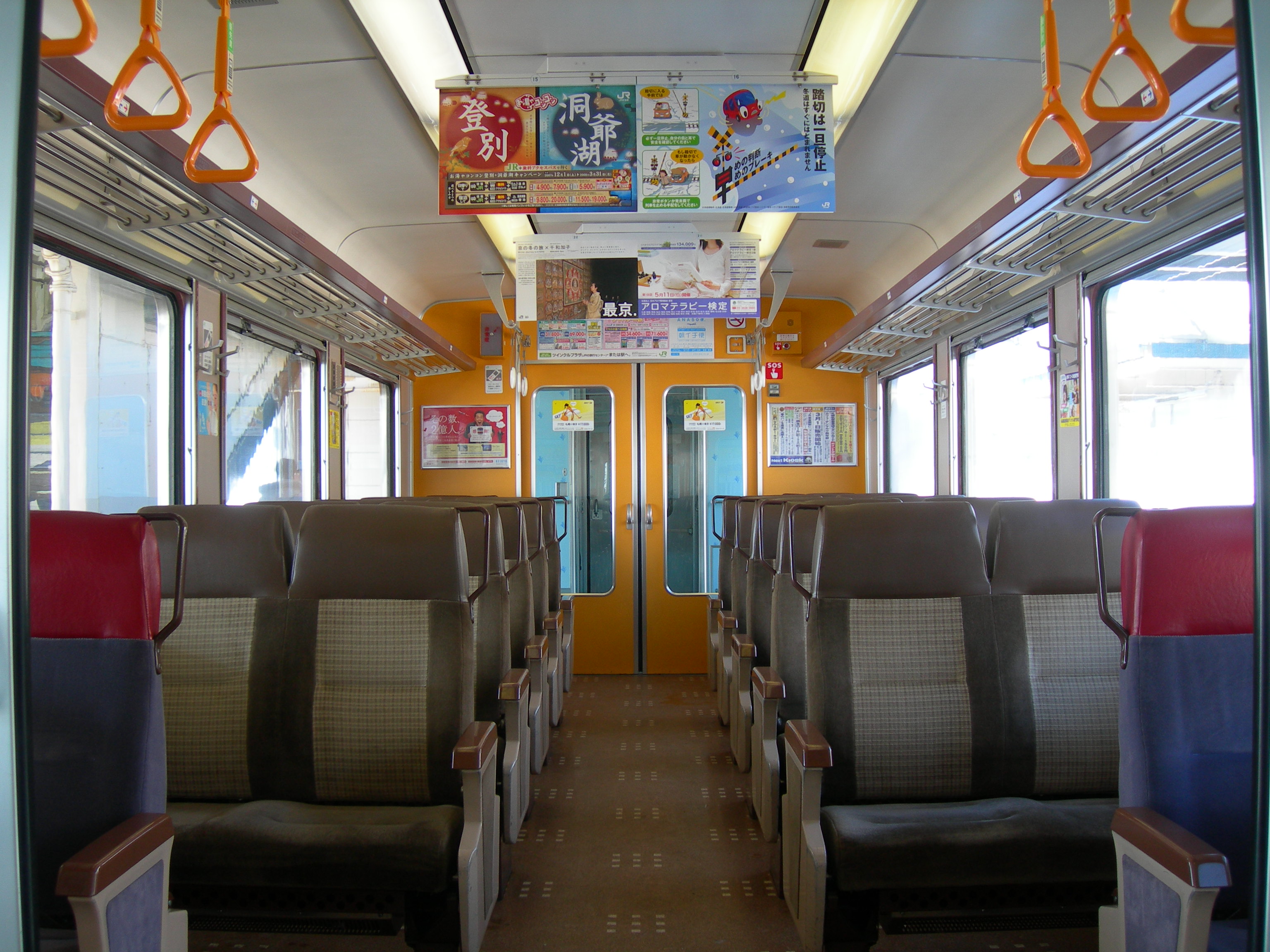 실내는 보온 대책으로 양미닫이식 칸막이 문을 설치한 데크가 있으며, 객실은 전후 2개 실로 나뉜다.[25] 좌석은 2+2 배열의 전환 크로스시트이며, 데크 인접부는 1+1 배열이다. 지정석 'U시트' 차량에는 프리스톱식 리클라이닝 시트가 설치되어 있다. 8차 도입분에서는 형광등 덮개 및 데크 칸막이 문을 폐지하고,[26] 출입문 인접부의 좌석을 2인 롱시트로 하고 있다.