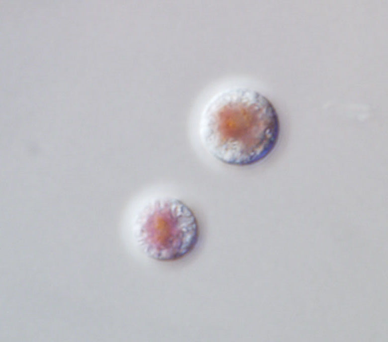 자모기는 정자낭을 만날 때까지 계속 성장하며, 수정되면 기저부의 세포벽이 점차 두꺼워져 심피모의 나머지 부분과 분리된다.[3] 충돌 시 정자낭과 심피모의 벽이 녹는다. 수컷 핵이 분열하여 심피모로 이동한다. 핵의 절반은 심피모의 핵과 융합된다.[3] 폴리아민 스퍼민이 생성되어 포자 생산을 유발한다.[3] 정자낭기는 "결합"할 기회를 늘리기 위해 길고 섬세한 부속지를 가질 수 있다.[3]