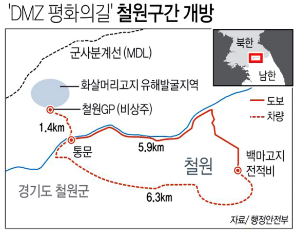 [14] 저널 "'DMZ 평화의 길' 철원 구간 추가 개방" http://dl.nanet.go.k[...] 국방홍보원 2019-06-01