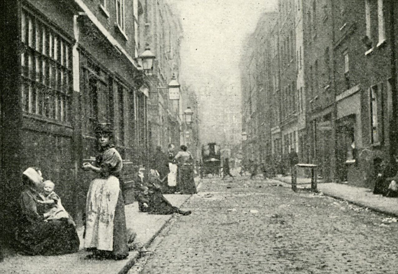 빅토리아 시대 말기, 화이트채플은 런던에서 가장 악명 높은 우범지대였다. 플라워앤딘 가 일대는 “광역시 전체를 통틀어 가장 위험한 거리”라고도 불렸고,[292] 도싯 가는 “런던 최악의 거리”라고 불렸다.[293] 광역경찰국 부국장 로버트 앤더슨은 화이트채플을 런던의 주요 범죄 “현장”들 중 하나로서 “위험 계층에게 흥미를 가진 자”들은 화이트채플에나 가보라는 말도 했다.[294] 강도와 폭행은 일상사였다. 화이트채플 구는 극도의 빈곤, 열악한 주거환경, 노숙자, 주폭, 고질적인 매춘으로 들끓었다. 이런 이유로 궁핍한 사람들을 위한 값싼 공동주택인 공동하숙소들이 세워지곤 했는데, 화이트채플 연쇄살인 피해자 중에는 이 공동하숙소 입주자도 있었다.[295] 확인된 살인 희생자는 모두 우범지대 중에서도 핵심인 스피탈필즈에 거주했다. 세 명이 조지 가(나중에 롤즈워스 가로 개칭), 두 명이 도싯 가, 두 명이 플라워앤 딘 가, 한 명이 트로울 가에 살았다.[296]2. 2. 만연한 범죄와 매춘