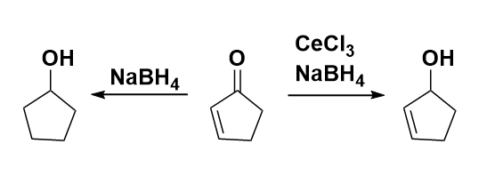 루체 환원 반응은 특정 작용기에 대한 시약의 친화력을 이용하여 반응성을 유도하는 화학선택성의 한 예이다. 이 반응에서는 산소 친화성 금속(예: 세륨(Ce))을 사용하여 α,β-불포화 케톤(공액 케톤)의 카보닐기를 환원제에 대해 더 반응성이 높게 만들어, 카보닐기만을 선택적으로 환원시킨다.[6] 일반적인 환원제는 α,β-불포화 케톤의 탄소-탄소 이중 결합과 카보닐기를 모두 환원시키는 경향이 있지만, 루체 환원은 카보닐기만을 목표로 한다.