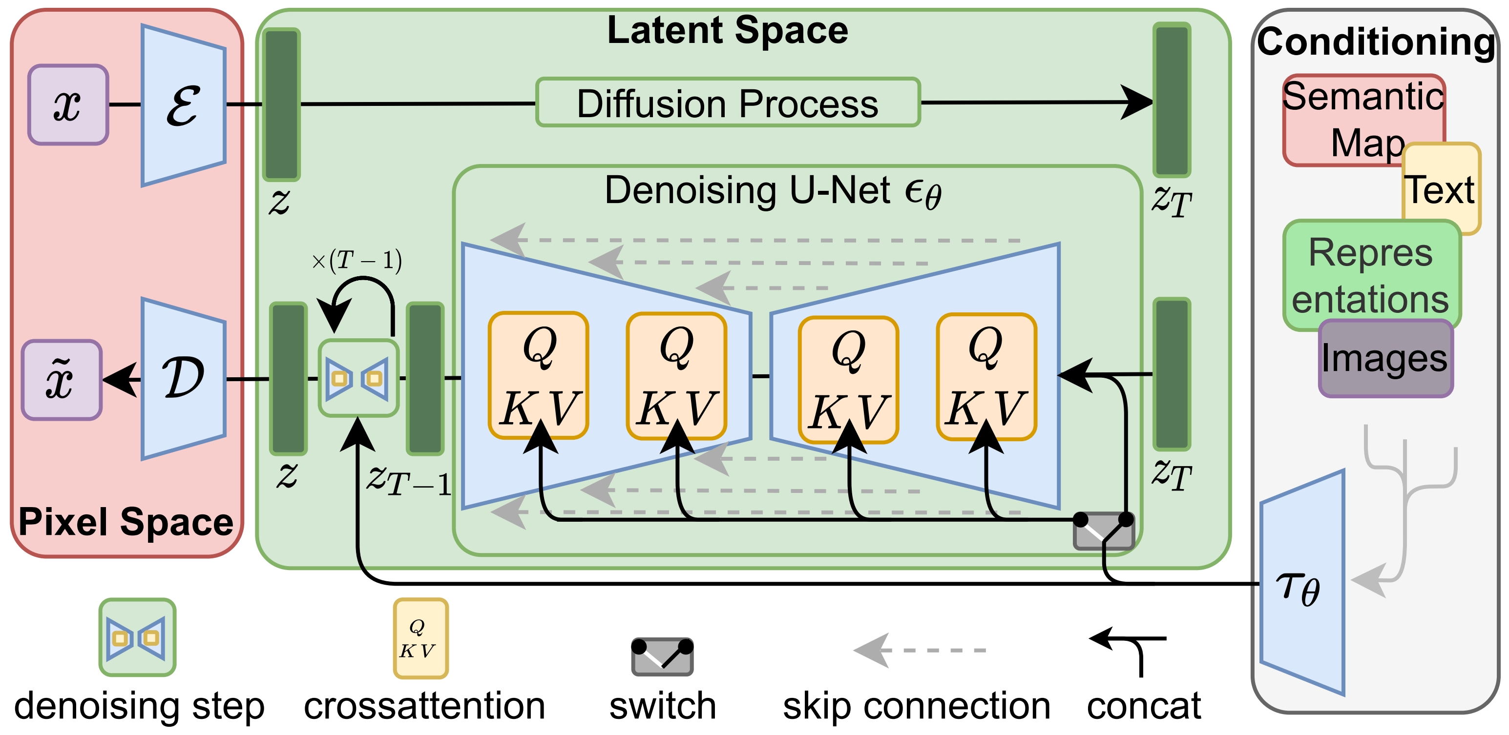 이미지 생성에는 주로 U-Net이 사용되지만,[51] 트랜스포머를 사용한 확산 트랜스포머(DiT)도 활용된다.[52] 전문가 혼합-트랜스포머도 적용 가능하다.[53] DDPM은 이미지뿐만 아니라 사람의 움직임 궤적과 같은 일반적인 데이터 분포 모델링에도 사용된다.[54]