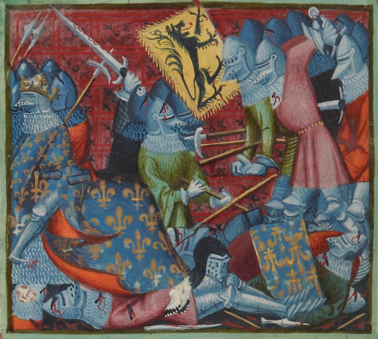 1297년 6월, 프랑스는 플랑드르를 침공하여 빠르게 점령했다. 잉글랜드의 에드워드 1세는 가스코뉴 전쟁에서 3년 동안 필리프 4세와 전쟁을 벌였지만, 스코틀랜드 독립 전쟁 때문에 프랑스에서 군대 대부분을 철수해야 했다. 그는 프랑스와 협상하여 1299년 몽트뢰 조약을 체결하고, 플랑드르와 프랑스는 1297년 신트바프스 비이베 휴전 조약을 체결하여 분쟁을 일시적으로 중단했다. 1300년 1월 휴전이 만료되자, 에드워드 1세는 필리프 4세의 여동생 마가렛과 결혼했고, 프랑스는 다시 플랑드르를 침공했다. 5월까지 플랑드르는 완전히 프랑스 통제하에 들어갔고, 다피에르의 기는 투옥되었으며, 필리프 4세는 프랑스 통제 행정 기구를 설치하고 플랑드르를 순회했다.