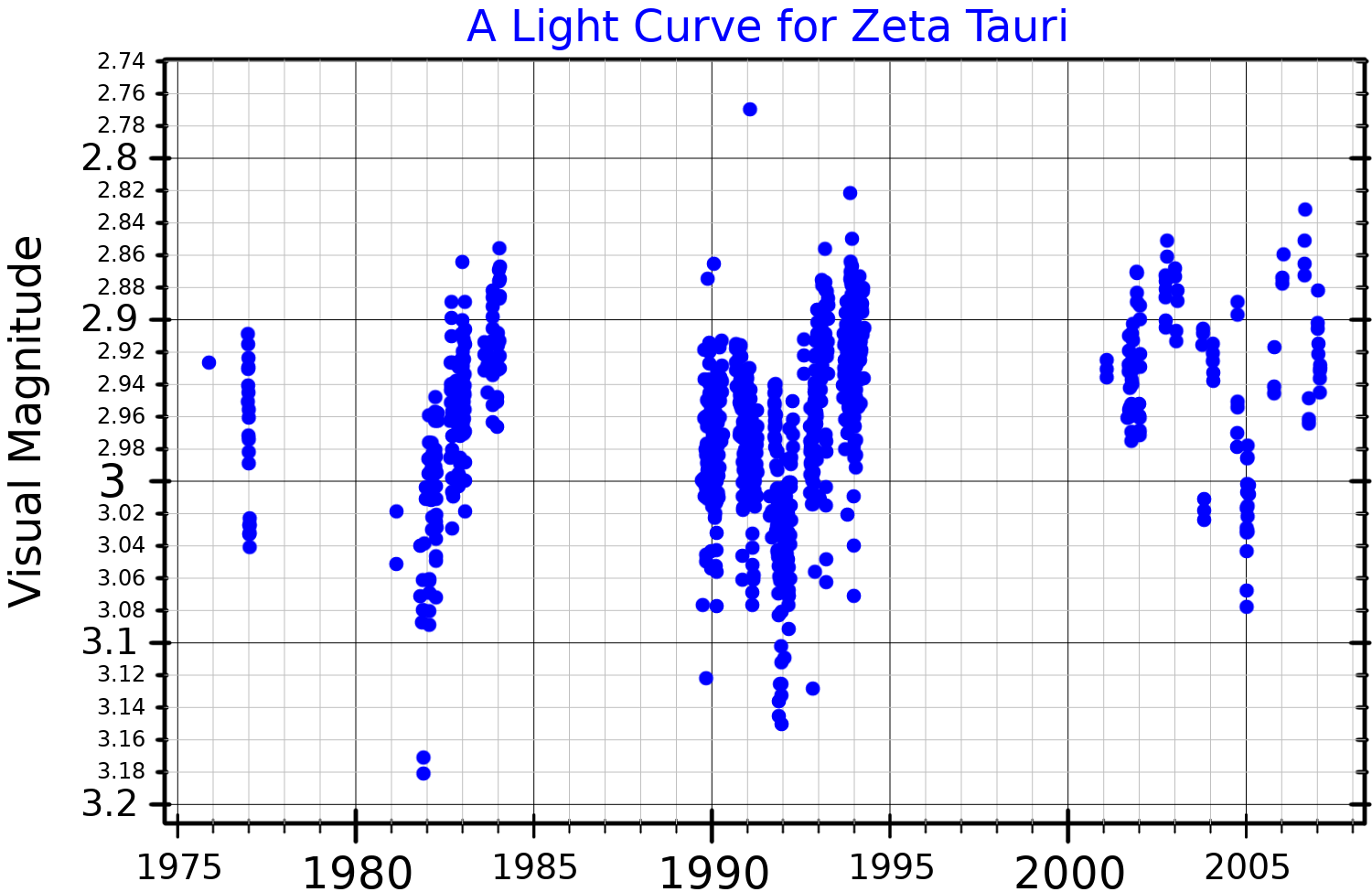 황소자리 제타는 스펙트럼과 밝기가 변하는 변광성이다. 변광성 일반 목록은 이를 식변광성 및 감마 카시오페이아 변광성으로 등재하고 있지만, 실제로는 둘 다 아닐 수도 있다는 연구 결과도 있다. 1981년부터 1986년까지 크로아티아 흐바르 천문대의 Hrvoje Božić과 Krešimer Pavlovski는 황소자리 제타의 밝기를 관측하여 광도 곡선에서 식과 유사한 효과를 발견했다고 보고했다. 하지만 이후 히파르코스 위성의 관측 데이터를 포함한 모든 이용 가능한 측광 자료를 분석한 연구에서는 식의 존재를 확인하지 못했다.