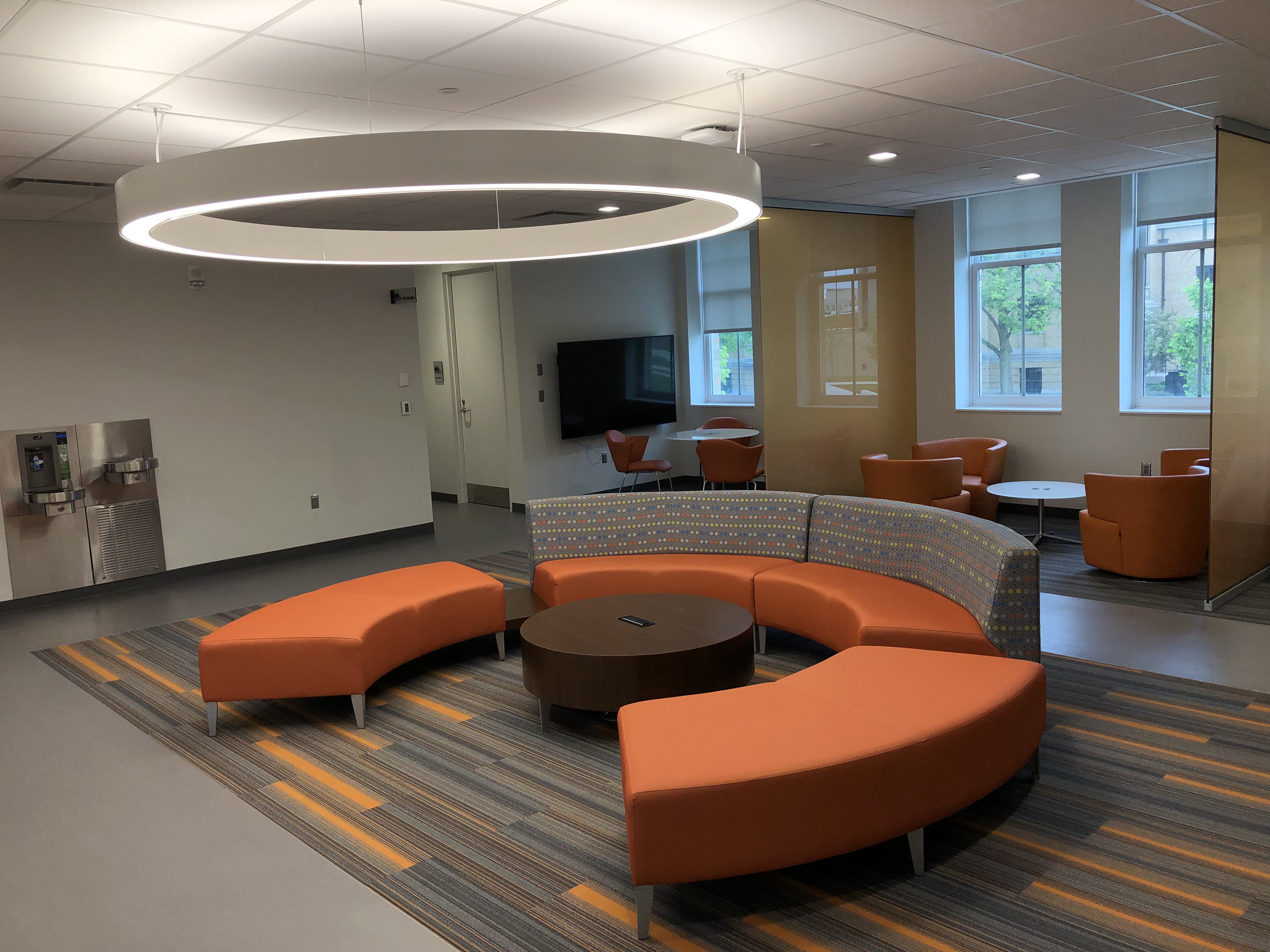 크기가 다른 여러 개의 비공식 회의 공간이 있는 방
