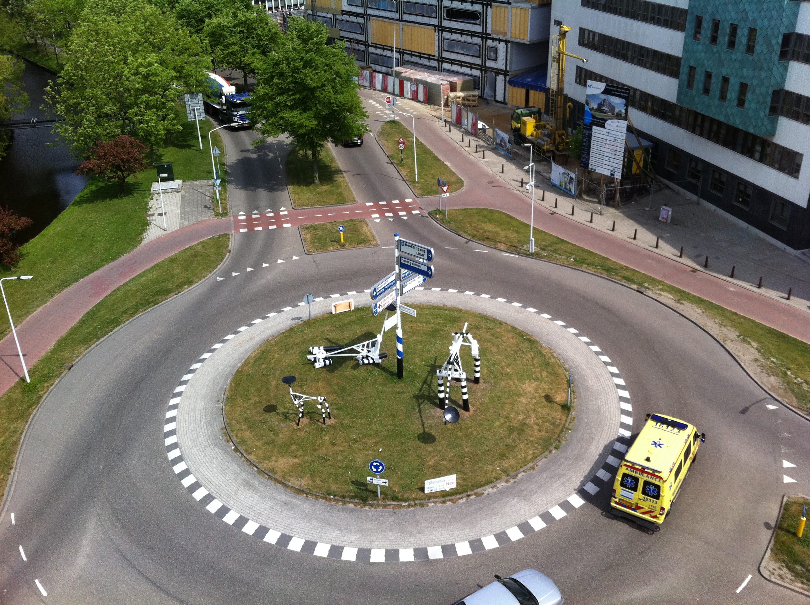 5 minutes of traffic on a Dutch roundabout with bi-directional cycling lanes